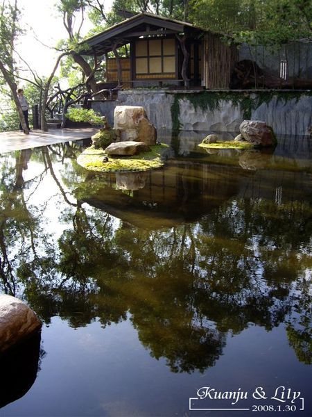 西式的建築和日式的裝潢並不突兀,有很多植物和一片草皮,水池可以鋪上小白石當枯山水,也可以注入清水欣賞倒映...